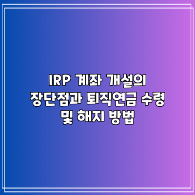 퇴직 후 안정적인 재정 관리를 위해 IRP 계좌(Individual Retirement Pension 계좌)를 고려하는 많은 사람들이 늘고 있습니다. 퇴직연금 수령 및 해지 방법을 정확하게 알고 준비하는 것은 매우 중요합니다. 오늘은 IRP 계좌의 장단점 및 퇴직연금 수령과 해지 방법에 대해 자세히 알아보겠습니다.