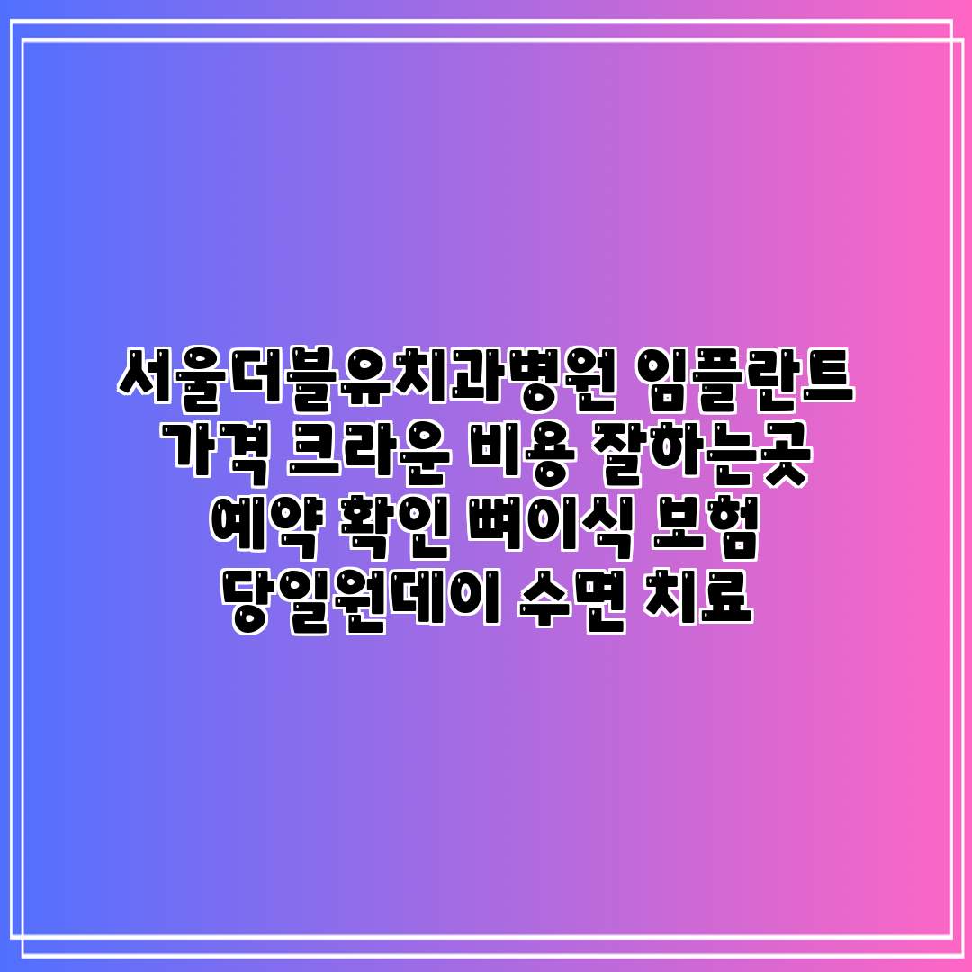💡 서울더블유치과병원의 임플란트 비용을 자세히 알아보세요. 💡