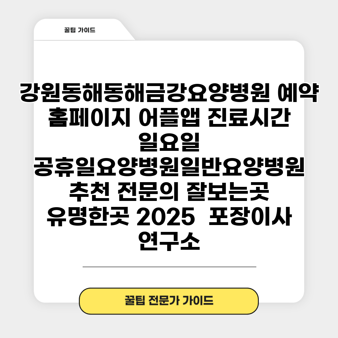 💡 강원동해 금강요양병원의 진료시간과 예약 정보가 궁금하다면 꼭 클릭해 보세요! 💡