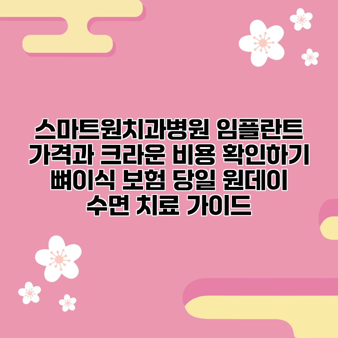 스마트원치과병원 임플란트 가격과 크라운 비용 확인하기 뼈이식 보험 당일 원데이 수면 치료 가이드