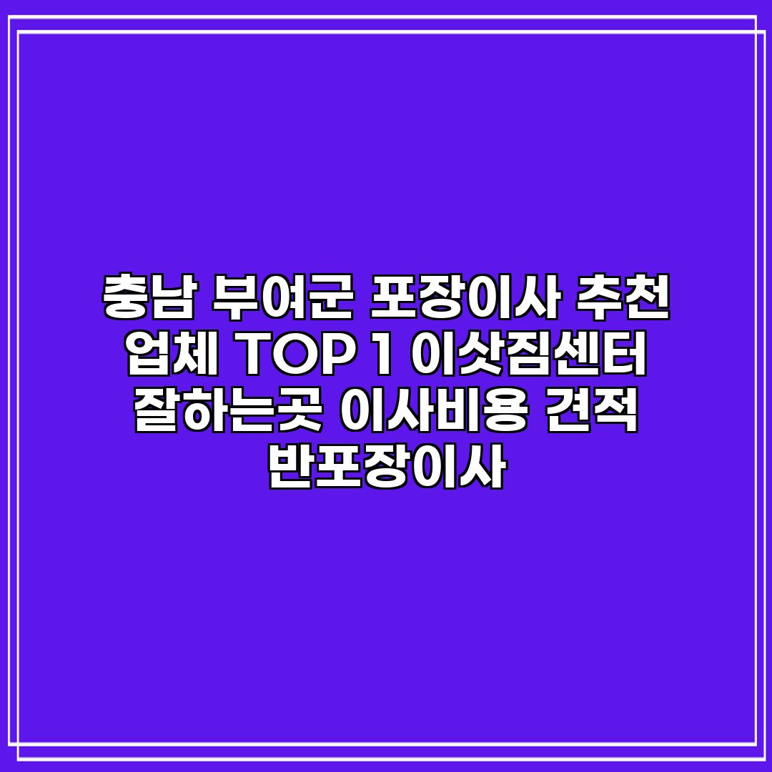 A: 충남 부여군에서 추천하는 포장이사 업체로는 고객 만족도와 전문성을 고려했을 때 ‘TOP 1 이삿짐센터’가 있습니다. 고객 리뷰와 서비스를 바탕으로 높은 평가를 받고 있습니다.