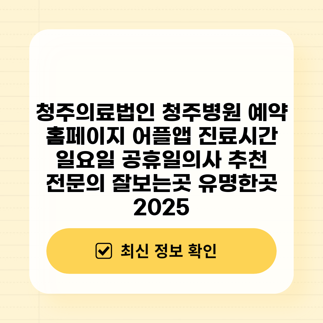 💡 청주병원의 진료 시간과 전문의 정보를 지금 바로 확인해 보세요. 💡