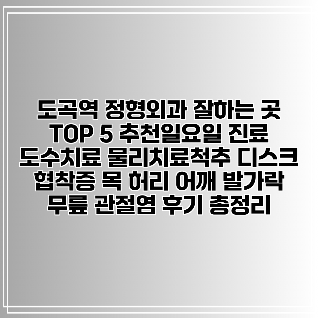 먼저, 도곡역의 추천 정형외과 TOP 5를 참고해 보세요. 병원마다 제공하는 치료와 전문성이 다르기 때문에, 여러분의 증상에 맞춘 선택이 필요합니다. 예를 들어, 도곡타워정형외과는 비수술적 치료에 중점을 두고 있어 통증 완화에 효과적이라는 후기가 많습니다.