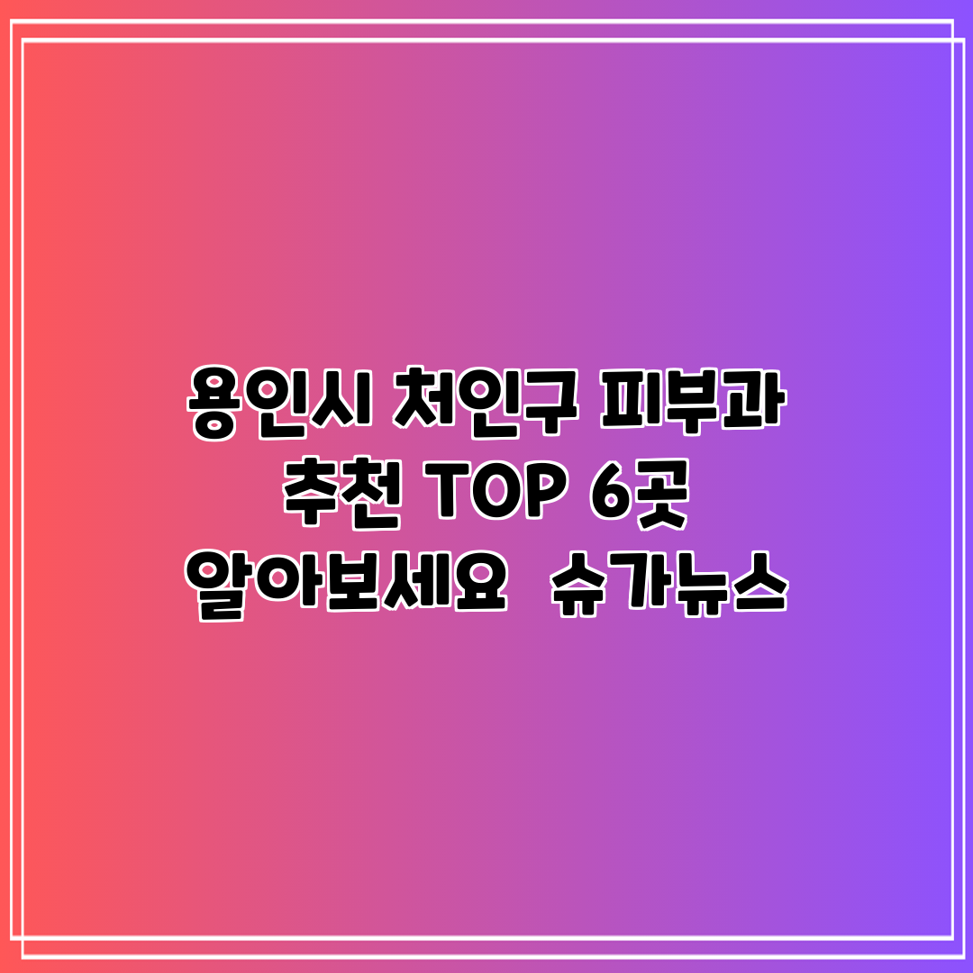 A: 용인시 처인구의 추천 피부과 6곳은 각각 다양한 전문성과 치료 방법을 갖추고 있습니다. 병원마다 피부치료, 여드름 치료, 피부 재생 등 특화된 서비스가 있으니, 본인의 피부 고민에 맞는 병원을 선택하는 것이 중요합니다.