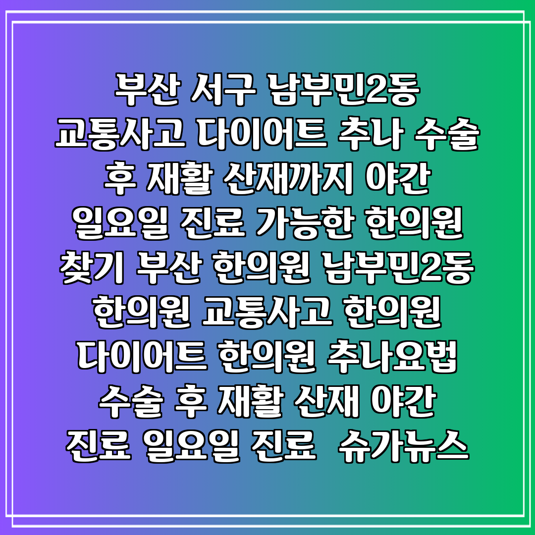 Q: 부산 서구 남부민2동에서 교통사고 후 한의원을 찾는 데 도움이 되는 팁은 무엇인가요?