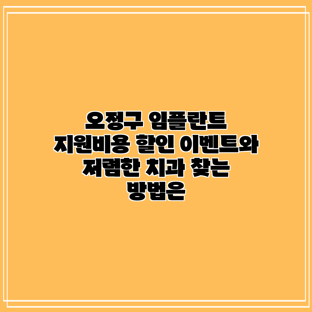 임플란트 치료 비용을 효율적으로 계산하는 방법을 알아봅시다. 이 가이드는 오정구 임플란트 지원비용 할인 이벤트와 저렴한 치과 찾기에 도움을 줍니다.