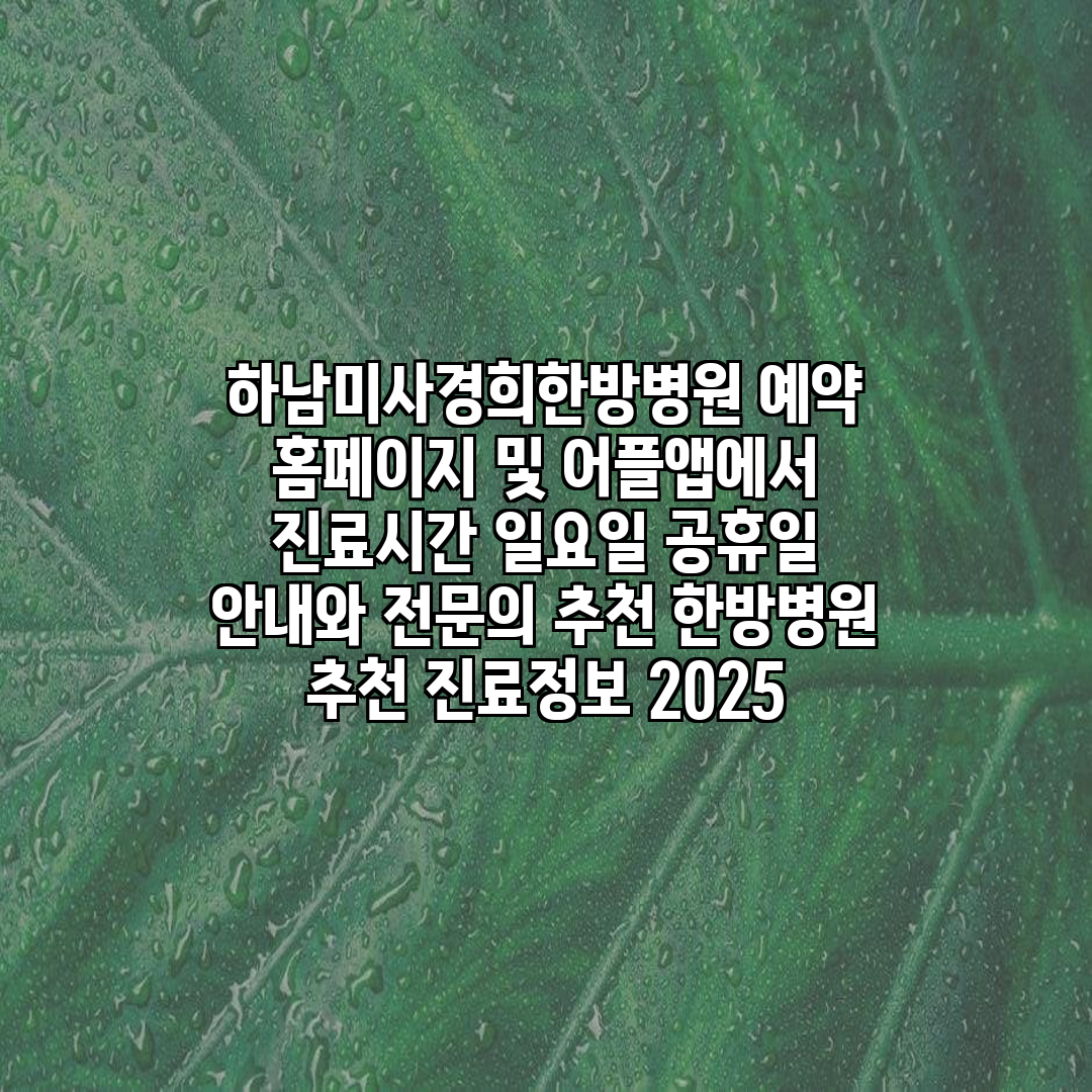 하남미사경희한방병원의 주말 진료를 효과적으로 이용하고 싶으시죠? 아래 방법을 따라 해 보세요: