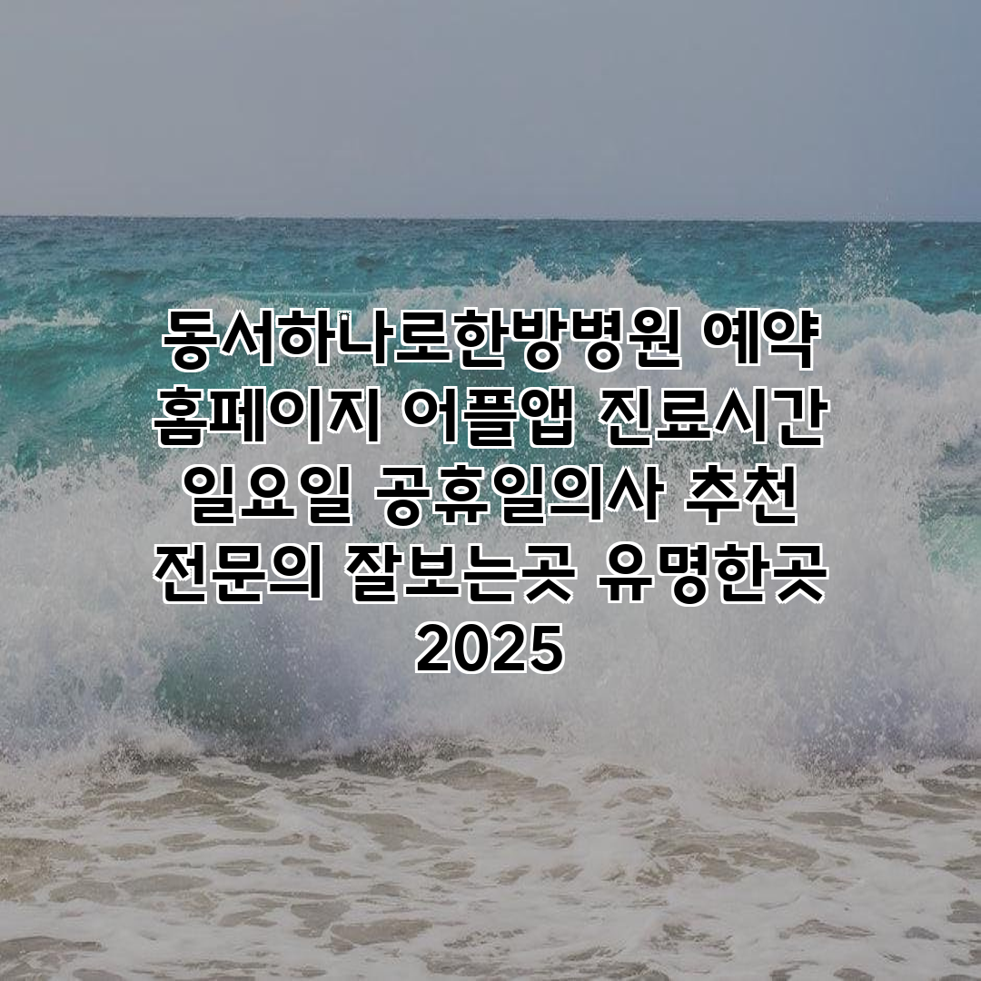 💡 동서하나로한방병원의 진료시간과 의사 추천 정보를 알아보세요. 💡