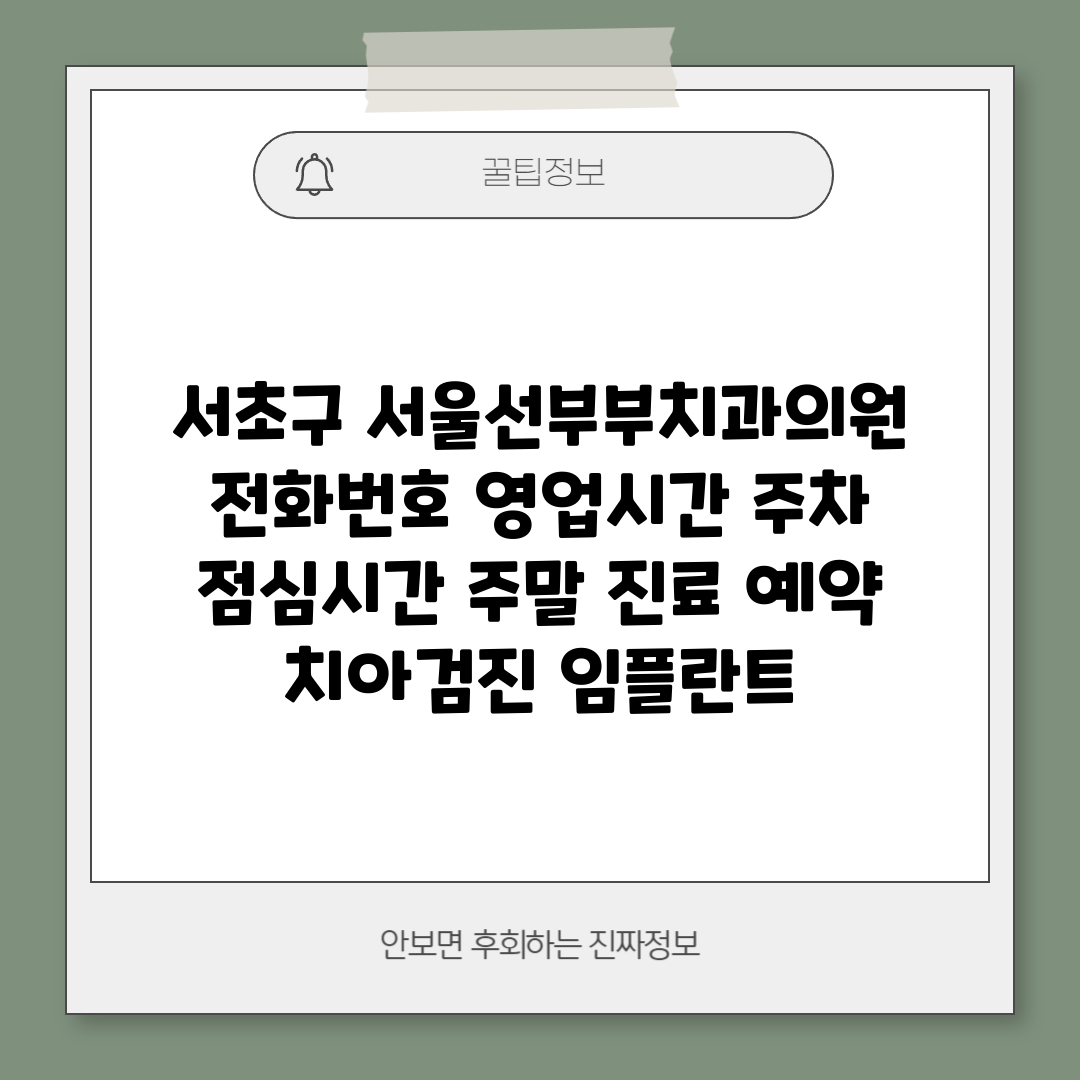 💡 서초구 서울선부부치과에서 필요한 정보를 지금 바로 알아보세요. 💡
