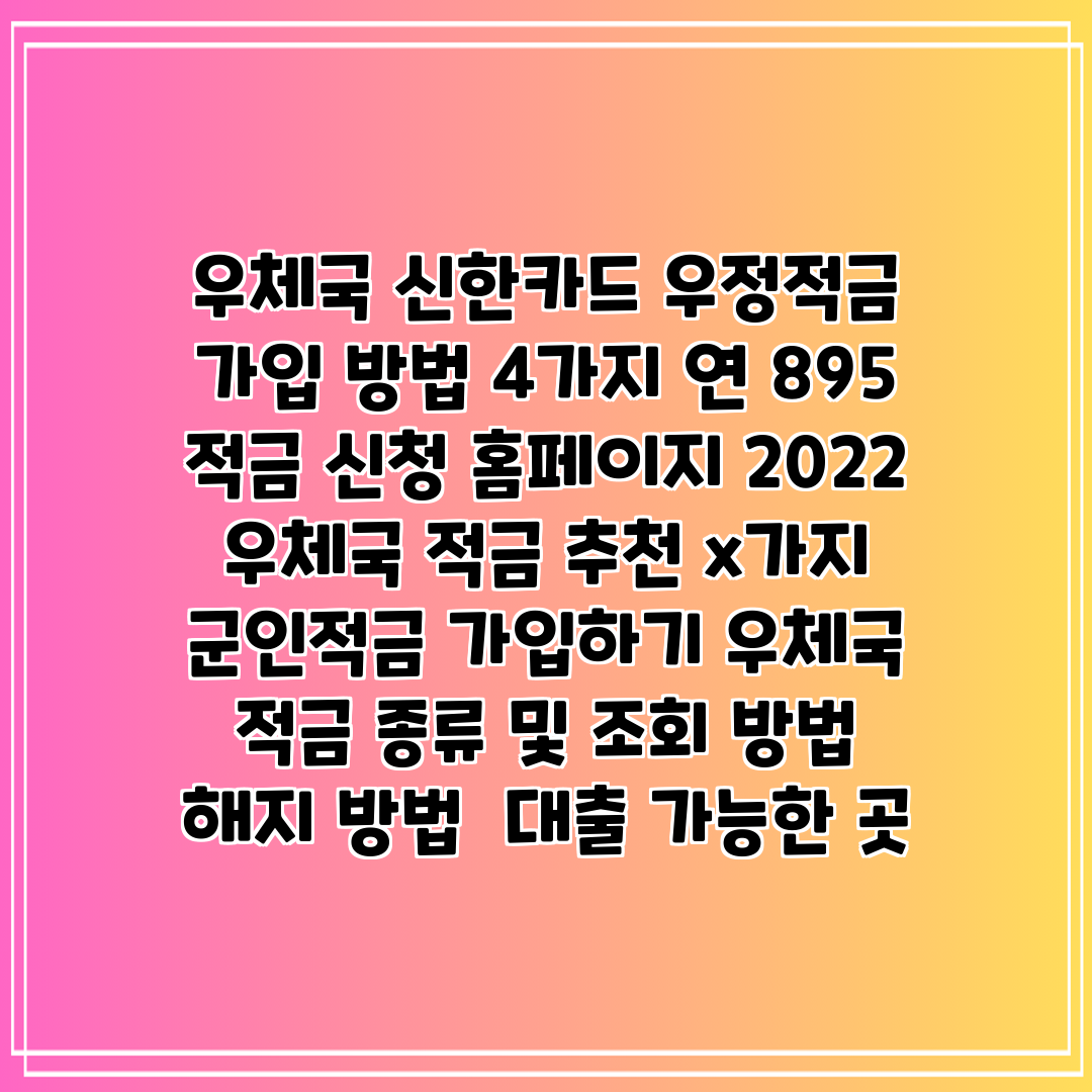 우체국 신한카드 우정적금 가입 방법 4가지 연 895 적금 신청 홈페이지 2022 우체국 적금 추천 x가지 군인적금 가입하기 우체국 적금 종류 및 조회 방법 해지 방법 대출 가능한 곳