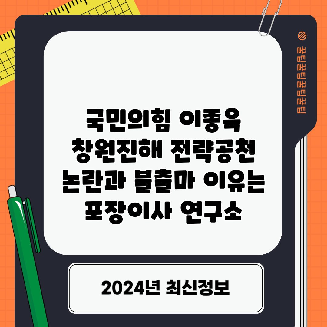 국민의힘 이종욱 창원진해 전략공천 논란과 불출마 이유는 포장이사 연구소